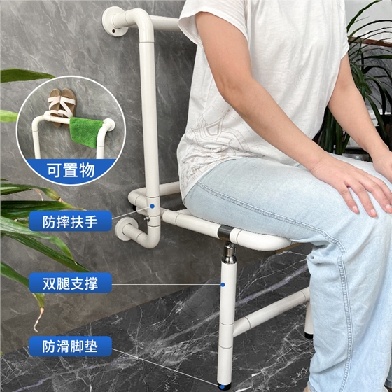 尼龍表面防滑顆粒,即使在潮濕的沐浴環(huán)境中也能提供可靠的抓握力,壁掛式安裝節(jié)省空間,小的衛(wèi)浴間也可以安裝使用。