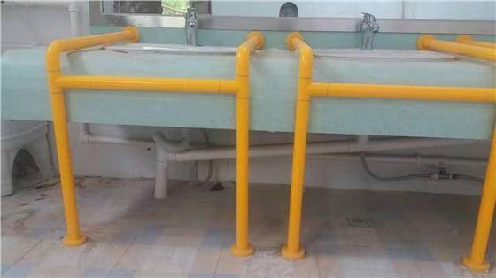 下面的圖片就是我們的業(yè)務(wù)同事高小姐的客戶劉先生發(fā)來的安裝好后的效果圖,這個(gè)項(xiàng)目是喀什地區(qū)殘聯(lián)康復(fù)中心兒童衛(wèi)生間里的尼龍扶手,亮麗的黃色,看起來很顯眼也很安全,工人安裝的也很好哦,一排排的,很整齊,很壯觀呢,有木有。