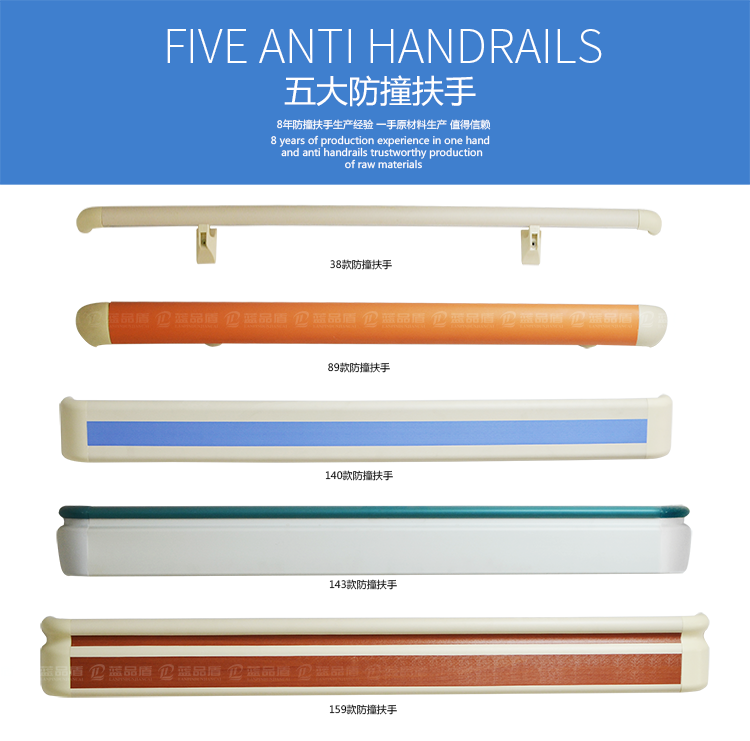 159安全抗菌扶手,醫(yī)用康復(fù)院扶手,婦幼醫(yī)院防撞扶手)由四個(gè)部分組成,其中面板采用 PVC(聚氯乙烯材)料生成,材料長(zhǎng)度5米,厚度2.0MM,可定制顏色。底座和封口采用ABS合成樹(shù)脂擠壓生成。扶手內(nèi)部采用鋁合金材料,鋁合金長(zhǎng)度5米,有多種厚度可供選擇。